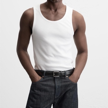 Özel erkek logo temel nervürlü spor salonu için üst giyim ağır pamuk kas kolsuz koşu Stringer Fitness spor egzersiz yelek