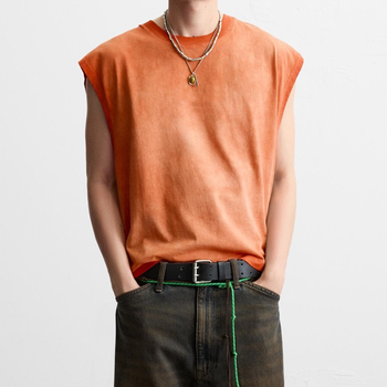 Özel ağır ağırlık Hip Hop asit yıkama O boyun Slim Fit kolsuz nervürlü katı kas Tee erkekler Tank Top